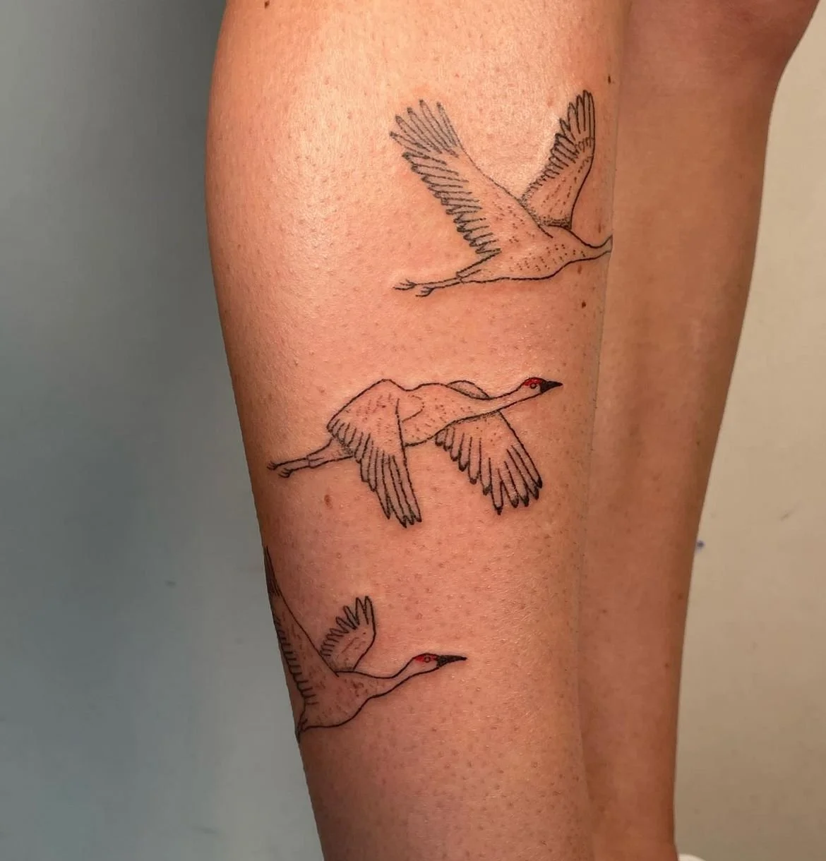 This is an example of a custom Design. The Client asked for 3 Sandhill Cranes flying in formation with a bit of red ink.